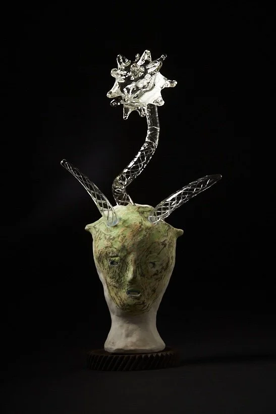 These works were made together with ceramicist Angela Nagel in response to the Covid epidemic of 2020, and were first exhibited at Montsalvat Gallery, Eltham, Vic.
